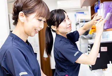 患者さんはもちろん、業者の方やスタッフ間でも思いやりの心を大切に、仕事をしているところです。スタッフ皆が自分第一ではなく「どうしたら相手の為になるのか」を考えています。自分自身で考えて動ける環境を作ってくれているのも一つの理由だと思います。